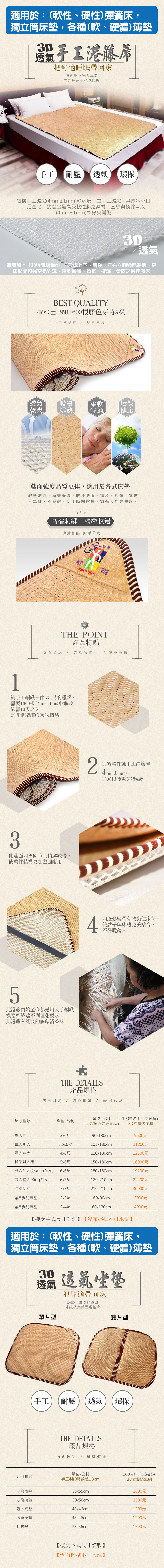 頂級100%純手工港籐蓆墊+3D立體加強透氣款